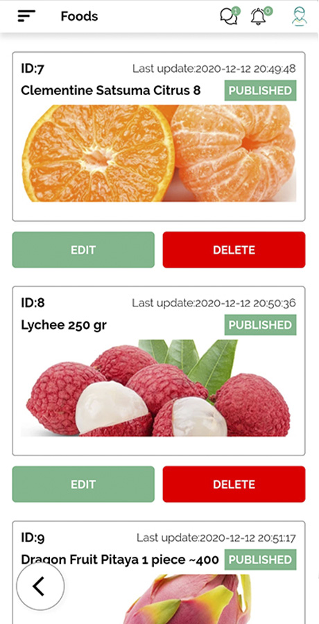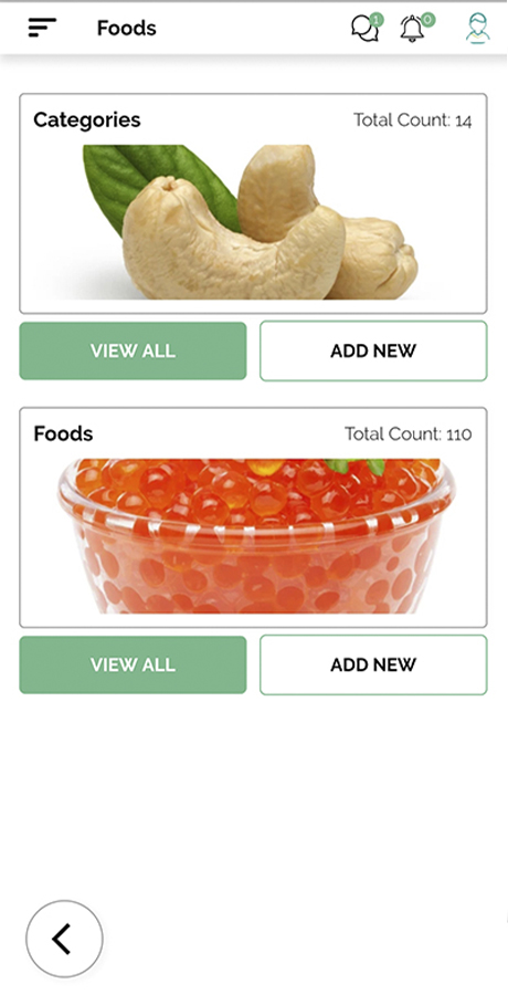 - Gestion des catégories d’aliments.
