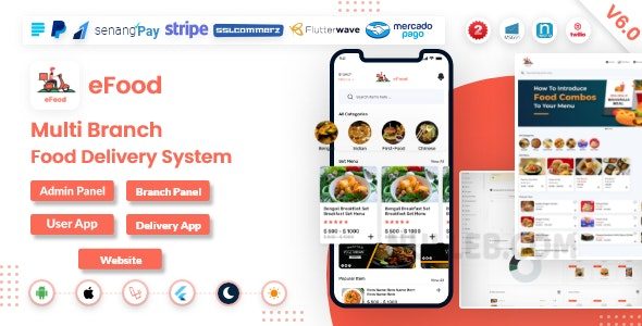 eFood est un système de gestion de restaurant de livraison de nourriture pris en charge par plusieurs succursales, fourni avec l’ application utilisateur, le site Web et l’ application du livreur . Avec ce système puissant, vous obtiendrez un puissant panneau d’administration construit avec Laravel Framework qui vous aidera à gérer intelligemment l’ensemble du système, ce qui accélère votre activité de restauration.