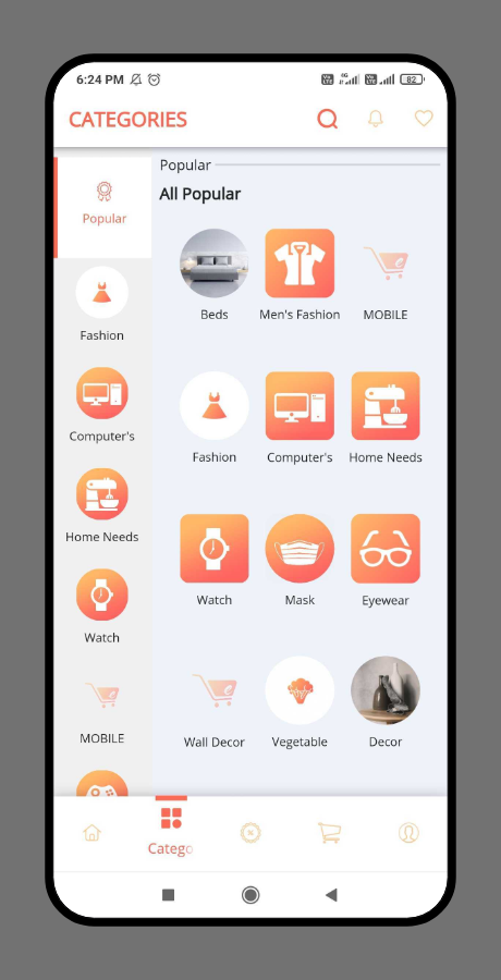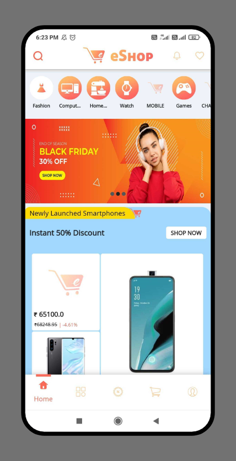 Écran d’accueil accrocheur et facile d’accès où vous pouvez afficher des options de recherche, des curseurs, divers vendeurs, des sections de produits dynamiques, des catégories et plus encore.