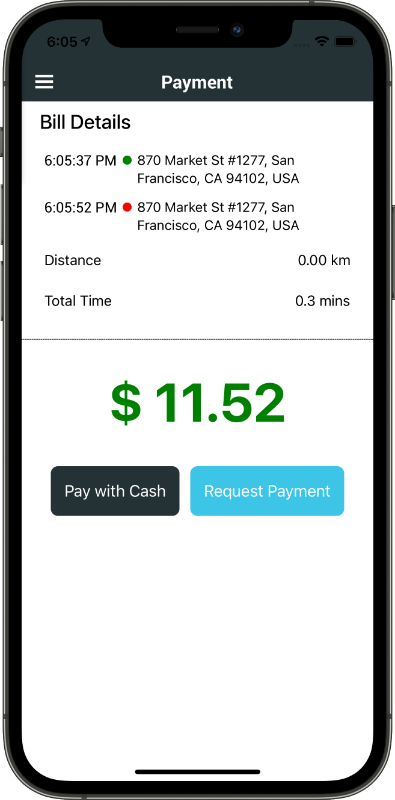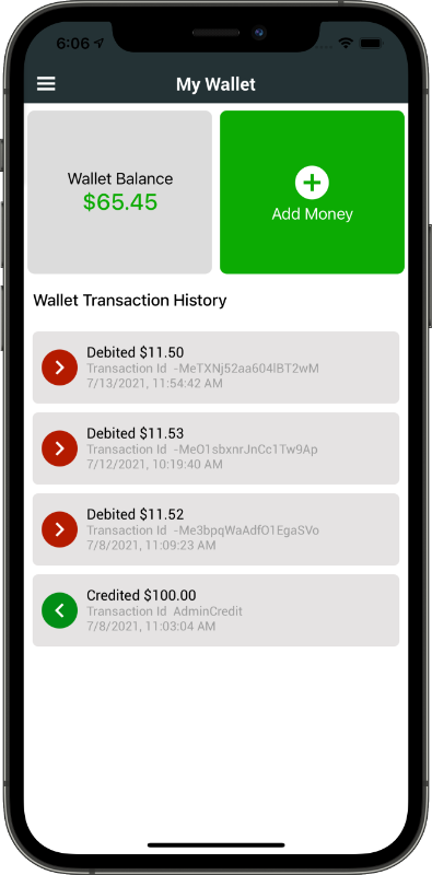 Portefeuille – Les clients et les conducteurs ont tous deux un portefeuille. Les clients peuvent recharger et payer à partir de celui-ci. Les revenus du conducteur sont ajoutés au portefeuille et ils peuvent retirer. L’administrateur a la possibilité de recharger les portefeuilles des deux types d’utilisateurs.