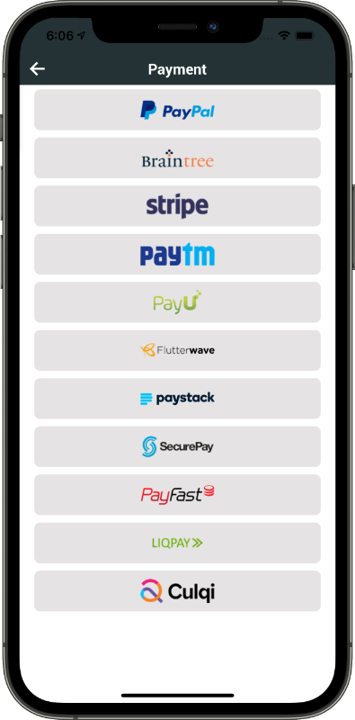 - Passerelles de paiement – Il existe plusieurs passerelles de paiement intégrées à l’application.
