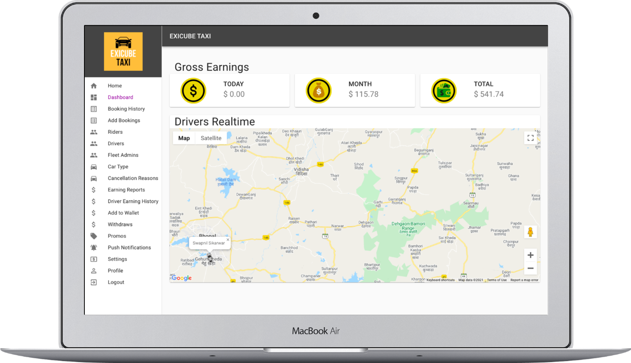 - Statistiques et rapports – Le tableau de bord pour l’administrateur contient des statistiques de base sur les revenus et une carte des conducteurs actifs. Il existe des rapports complets sur les revenus basés sur le conducteur et les revenus de l’application pour l’administrateur.